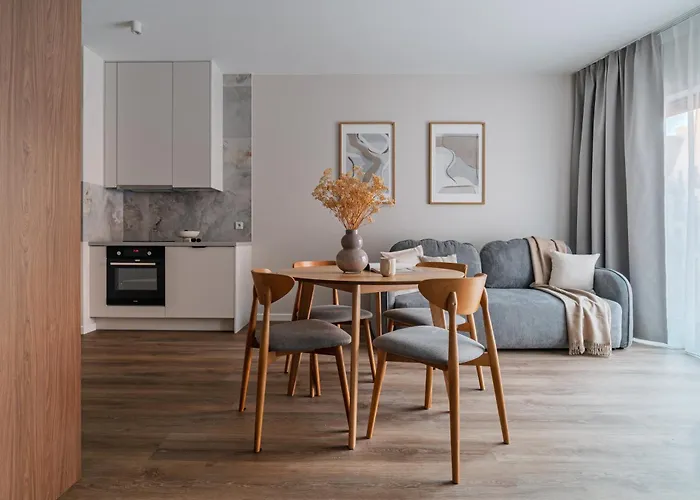 Az apartman önellátó felszereltséggel, többek között teakonyhával, valamint étkezővel várja a vendégeket. A Szafarnia buszmegálló hozzávetőlegesen 5 perc sétára fekszik.
